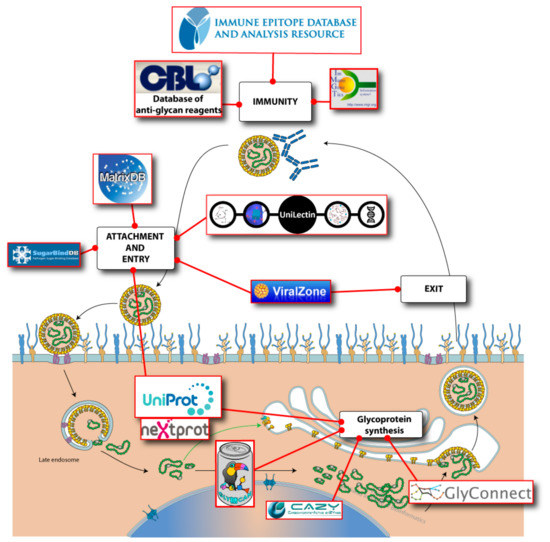 | GlyTouCan | www.glytoucan.org | Glycan 2D structures | Provides information on glycan structure. | Check existence of glycan bound by virus | Not curated | 2016 | [22] |