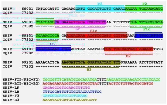 Primers for LAMP were designed to target the gene of the second largest subunit DNA-directed RNA polymerase II located between 69047—69263 of SHIV 20141215 genome (GenBank access no. MF599468), of which the sequence was completely complementary to that of CQIV CN01 77416—77200 (Figure 5). In addition, results of LAMP primer specificity assay showed that the reactions were only positive for DIV1-infected shrimp, while the reactions were negative for WSSV, VpAHPND, IHHNV, or EHP infected shrimps. The reactions indicated that the LAMP primers in this study were specific to DIV1 and should work for ISDL.