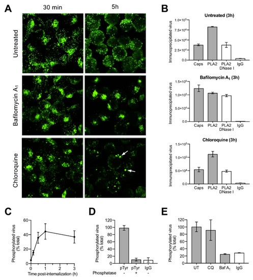 3.5. Incoming Capsids Become Reactive to Phosphospecific Antibodies Following Endosomal Escape