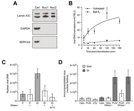 3.6. Capsids Phosphorylated and with Accessible Genomes Accumulated Progressively in the Nuclear Fraction