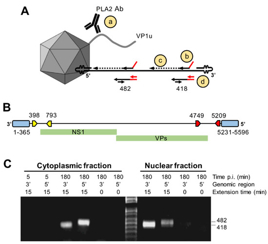 - Vihinen-Ranta, M.; Wang, D.; Weichert, W.S.; Parrish, C.R. The VP1 N-terminal sequence of canine parvovirus affects nuclear transport of capsids and efficient cell infection. J. Virol. 2002, 76, 1884–1891. [Google Scholar] [CrossRef]