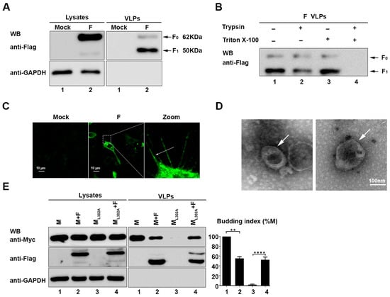 3.2. The F Protein Regulates VLP Formation and Release of the M Protein