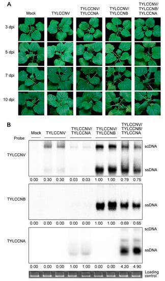 - Cui, X.; Tao, X.; Xie, Y.; Fauquet, C.M.; Zhou, X. A DNAbeta associated with Tomato yellow leaf curl China virus is required for symptom induction. J. Virol. 2004, 78, 13966–13974. [Google Scholar] [CrossRef]