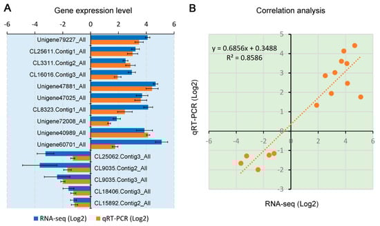 | Unigene47025_All | 3.700 ± 0.417 | 3.38 × 10−10 | 6.9 × 10−6 | up | GDSL esterase/lipase 2-like |