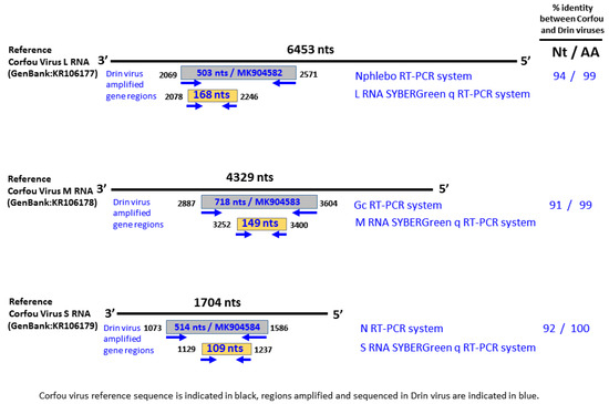 The Drin virus was identified as closely related to the Corfou virus based on the partial sequence obtained from the Nphlebo primers in the polymerase (L RNA).