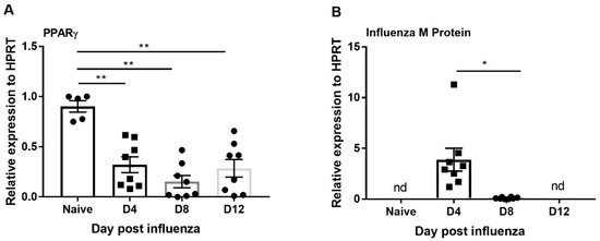 3.2. PPARγ Expression Is Suppressed in Response to Influenza Infection