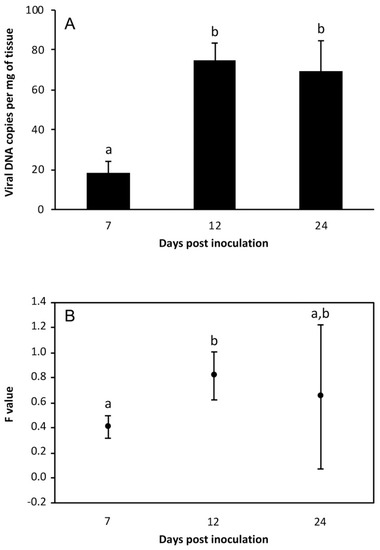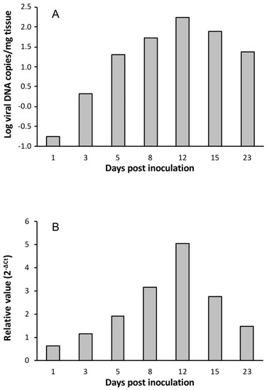 Viral DNA quantification was carried out by qPCR using the methodology described by Valverde et al. [22]. Viral loads were expressed as copies of viral DNA per milligram of tissue.