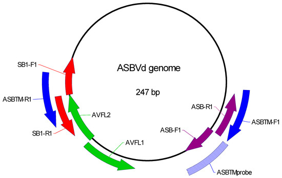 Primers tested for assay design. Primer locations on the ASBVd genome, including primer sequences, are listed in Table 2.