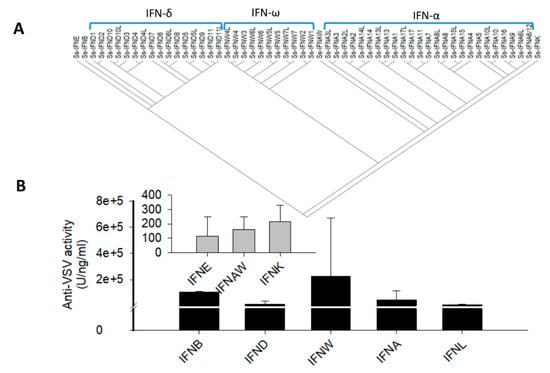 - Secombes, C.J.; Zou, J. Evolution of Interferons and Interferon Receptors. Front. Immunol. 2017, 8, 209. [Google Scholar] [CrossRef] [PubMed]