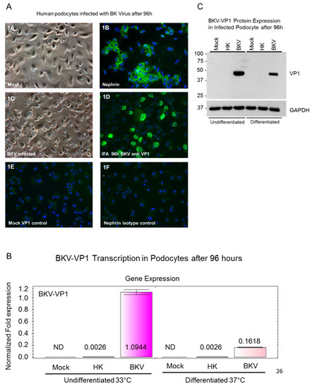 3.2. BKV Infected Undifferentiated Podocytes Express Higher Levels of VP1 Transcripts