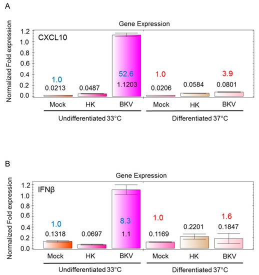3.4. BKV Infection Induces Higher IFNβ and CXCL10 Gene Expression in Undifferentiated Podocytes