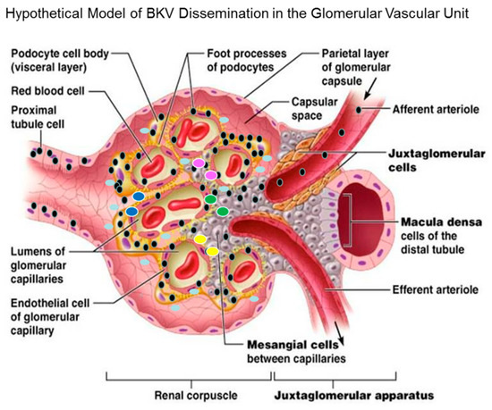 3.11. Hypothetical Model for BKV Dissemination in Glomerulus.