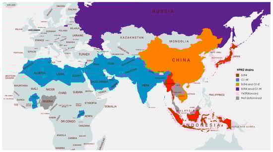 H9N2 viruses are considered endemic in China, Vietnam and South Korea (see Table 1, Figure 1) [,,,]. In recent years, the virus has been isolated for the first time in Cambodia, Myanmar, Indonesia, Malaysia and the Russian Far East and serological evidence suggests the virus may also be present in poultry in Laos and Thailand [,,,,,,,]. BJ94 lineage viruses are found throughout China, Vietnam, Cambodia, Myanmar and Indonesia. G1 ‘Eastern’ viruses are also found in South China, Vietnam and Cambodia, mostly infecting minor poultry species such as quail. Y439 lineage viruses have been found in wild birds (and sporadically in poultry) throughout Eurasia but a distinct poultry-adapted subset circulates endemically in poultry in South Korea. Vaccination of poultry has been used in recent years to try to control endemic diseases in large areas of China and South Korea [,].