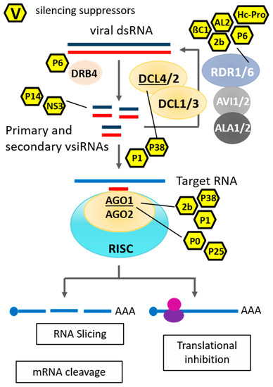 - Voinnet, O.; Pinto, Y.M.; Baulcombe, D.C. Suppression of gene silencing: A general strategy used by diverse DNA and RNA viruses of plants. Proc. Natl. Acad. Sci. USA 1999, 23, 14147–14152. [Google Scholar] [CrossRef] [PubMed]