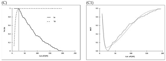 - Greiner, M. Two-graph receiver operating characteristics (TG-ROC)—A Microsoft-Excel template for the selection of cut-off values in diagnostic tests. J. Immunol. Methods 1995, 185, 123–132. [Google Scholar] [CrossRef]