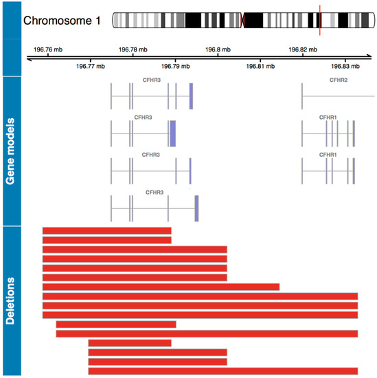 - Zipfel, P.F.; Edey, M.; Heinen, S.; Józsi, M.; Richter, H.; Misselwitz, J.; Hoppe, B.; Routledge, D.; Strain, L.; Hughes, A.E.; et al. Deletion of Complement Factor H–Related Genes CFHR1 and CFHR3 Is Associated with Atypical Hemolytic Uremic Syndrome. PLoS Genet. 2007, 3, e41. [Google Scholar] [CrossRef] [PubMed]