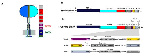 3.1. Engineering of TGEV Infectious cDNAs Expressing S Protein from a Virulent PEDV