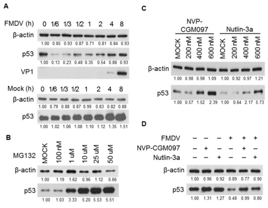 3.1. FMDV Infection Dynamically Regulates p53 Protein Level Partly through MDM2-Dependent Proteasome Pathway