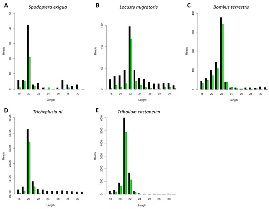 Santos, D.; Mingels, L.; Vogel, E.; Wang, L.; Christiaens, O.; Cappelle, K.; Wynant, N.; Gansemans, Y.; Van Nieuwerburgh, F.; Smagghe, G.; et al. Generation of Virus- and dsRNA-Derived siRNAs with Species-Dependent Length in Insects. Viruses 2019, 11, 738. https://doi.org/10.3390/v11080738