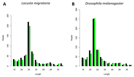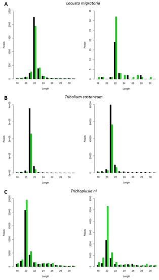 - Wei, Y.; Chen, S.; Yang, P.; Ma, Z.; Kang, L. Characterization and comparative profiling of the small RNA transcriptomes in two phases of locust. Genome Biol. 2009, 10, R6. [Google Scholar] [CrossRef]