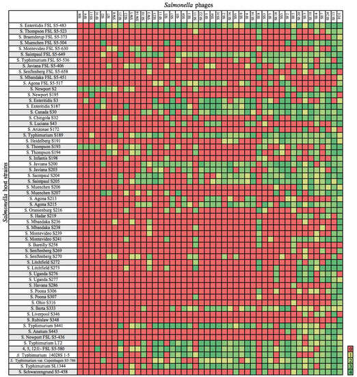 3.1. Host Range of Phages Infecting Salmonella