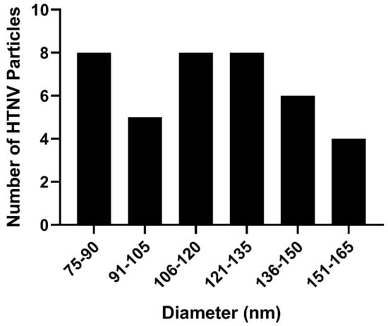 Histogram of diameters measured for HTNV virions with round morphology. The diameters of 37 virions with a round morphology were measured from several cryo-EM images.