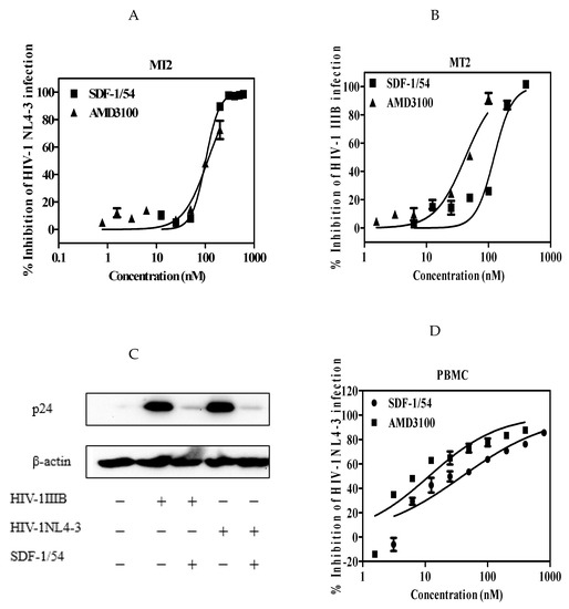 3.4. SDF-1/54 Inhibits HIV-1 Entry by Inducing CXCR4 Internalization