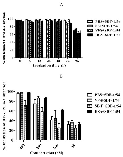 2.10. Determination of the Inhibitory Activity of SDF-1/54 in PBS, SE-F, VFS and Human Serum Albumin (HSA) Respectively