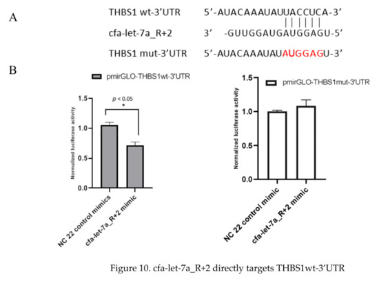 3.8. cfa-let-7a_R+2 Directly Targets THBS1 3′ UTR