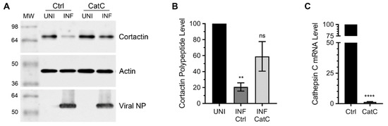3.1. Lysosomal Protease, Cathepsin C is Involved in Cortactin Degradation during IAV Infection