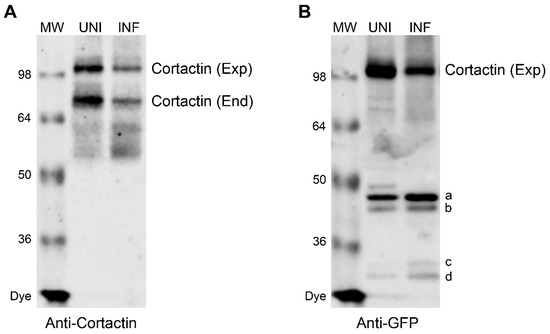 - Selbach, M.; Backert, S. Cortactin: an Achilles’ heel of the actin cytoskeleton targeted by pathogens. Trends Microbiol. 2005, 13, 181–189. [Google Scholar] [CrossRef] [PubMed]