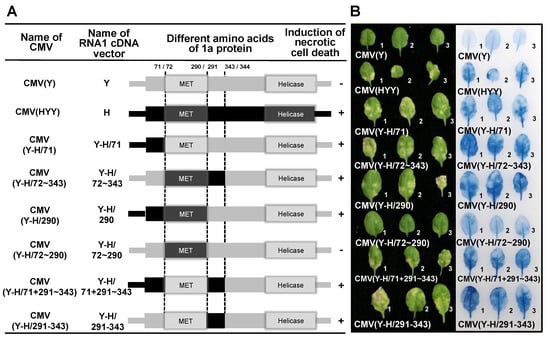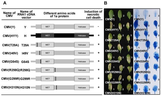 3.5. Analysis of Single Amino Acid Substitutions in the CMV 1a Protein for Induction of Necrotic Cell Death in Virus-Inoculated Leaves