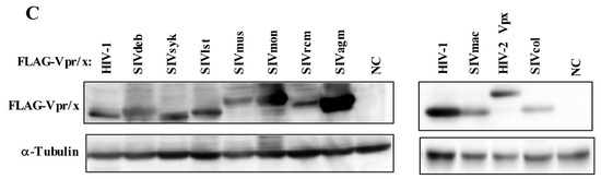 - Chang, H.; Siarot, L.; Murakami, T.; Aida, Y. Viral Infectious Diseases Unit, RIKEN, Wako, Saitama, Japan. Subcellular Distribution of Primate Lentiviruses 11 Vpr/x Proteins. Unpublished work. 2020. [Google Scholar]