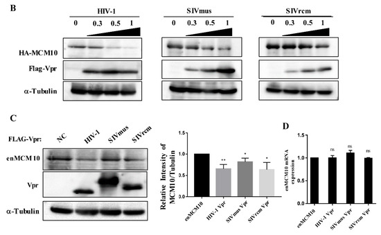 3.2. MCM10 down-Regulation by Primate Lentiviruses Vpr/x Proteins