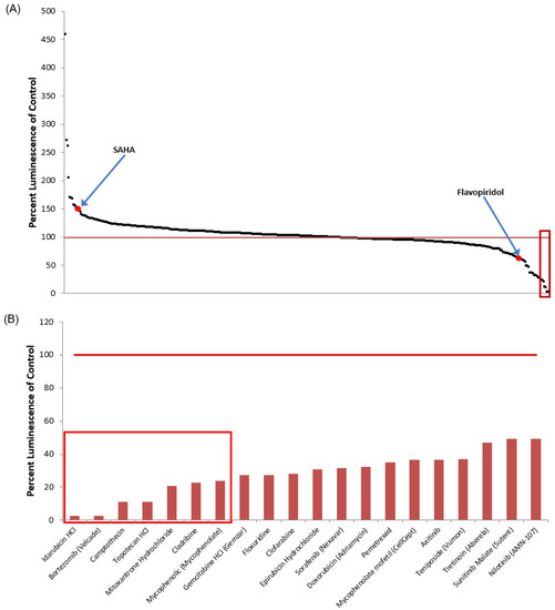Chicago/Turabian StyleSampey, Gavin C., Sergey Iordanskiy, Michelle L. Pleet, Catherine DeMarino, Fabio Romerio, Renaud Mahieux, and Fatah Kashanchi. 2020. "Identification of Modulators of HIV-1 Proviral Transcription from a Library of FDA-Approved Pharmaceuticals" Viruses 12, no. 10: 1067. https://doi.org/10.3390/v12101067