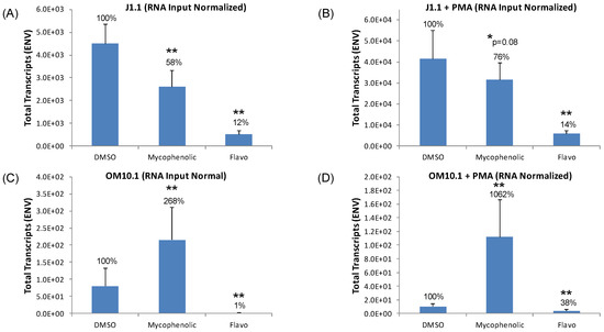 - Hossain, M.M.; Coull, J.J.; Drusano, G.L.; Margolis, D.M. Dose proportional inhibition of HIV-1 replication by mycophenolic acid and synergistic inhibition in combination with abacavir, didanosine, and tenofovir. Antiviral Res. 2002, 55, 41–52. [Google Scholar] [CrossRef]