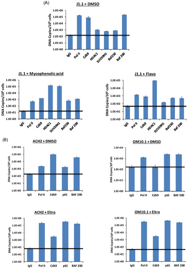 - Pearson, R.; Kim, Y.K.; Hokello, J.; Lassen, K.; Friedman, J.; Tyagi, M.; Karn, J. Epigenetic silencing of human immunodeficiency virus (HIV) transcription by formation of restrictive chromatin structures at the viral long terminal repeat drives the progressive entry of HIV into latency. J. Virol. 2008, 82, 12291–12303. [Google Scholar] [CrossRef]