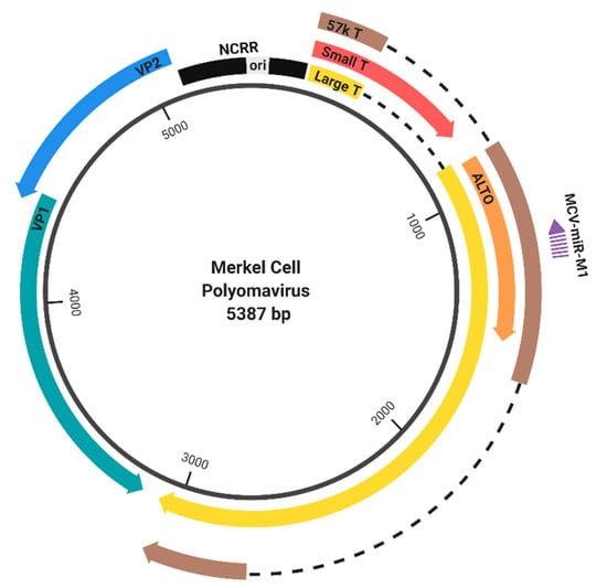 - Seo, G.J.; Chen, C.J.; Sullivan, C.S. Merkel cell polyomavirus encodes a microrna with the ability to autoregulate viral gene expression. Virology 2009, 383, 183–187. [Google Scholar] [CrossRef]