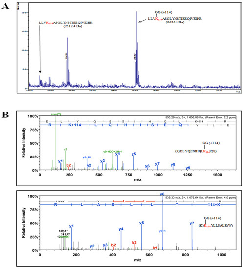 - Xu, P.; Duong, D.M.; Seyfried, N.T.; Cheng, D.; Xie, Y.; Robert, J.; Rush, J.; Hochstrasser, M.; Finley, D.; Peng, J. Quantitative proteomics reveals the function of unconventional ubiquitin chains in proteasomal degradation. Cell 2009, 137, 133–145. [Google Scholar] [CrossRef]