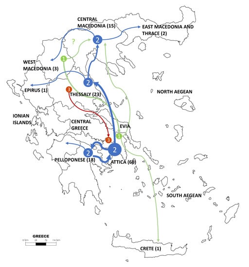 - Georgakopoulou, T.; Horefti, E.; Vernardaki, A.; Pogka, V.; Gkolfinopoulou, K.; Triantafyllou, E.; Tsiodras, S.; Theodoridou, M.; Mentis, A.; Panagiotopoulos, T. Ongoing measles outbreak in Greece related to the recent European-wide epidemic. Epidemiol. Infect. 2018, 146, 1692–1698. [Google Scholar] [CrossRef]