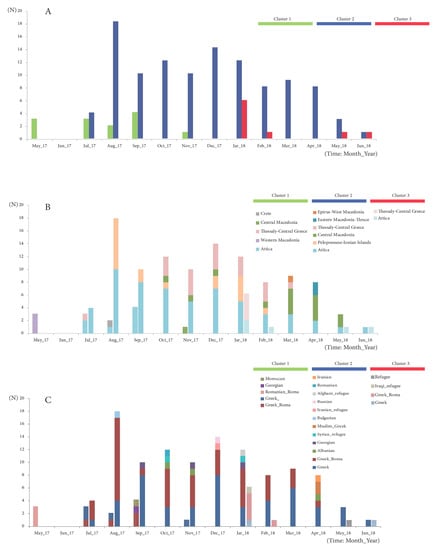 Chicago/Turabian StylePogka, Vasiliki, Elina Horefti, Maria Evangelidou, Evangelia Georgia Kostaki, Dimitrios Paraskevis, Anastasia Flountzi, Theano Georgakopoulou, Ioanna Magaziotou, Andreas Mentis, and Timokratis Karamitros. 2020. "Spatiotemporal Distribution and Genetic Characterization of Measles Strains Circulating in Greece during the 2017–2018 Outbreak" Viruses 12, no. 10: 1166. https://doi.org/10.3390/v12101166