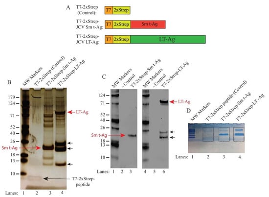 3.1. The Use of a T7-2xStrep Tag and Magnetic Bead Affinity Purification System to Pull down the JCV LT-Ag- and JCV Sm t-Ag-Interacting Proteins