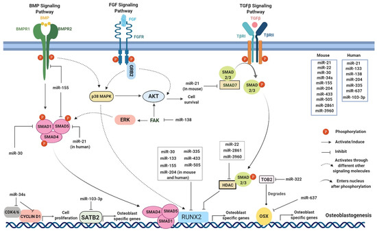 miRNAs regulate different signaling pathways in osteoblastogenesis.