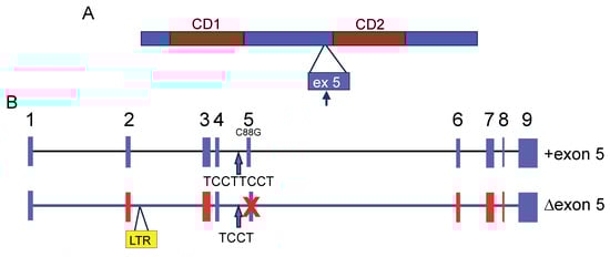 - Houzet, L.; Battini, J.L.; Bernard, E.; Thibert, V.; Mougel, M. A new retroelement constituted by a natural alternatively spliced RNA of murine replication-competent retroviruses. EMBO J. 2003, 22, 4866–4875. [Google Scholar] [CrossRef] [PubMed]