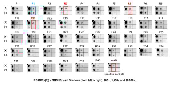 - Wu, J.; Ni, Y.; Liu, H.; Rao, L.; Zhou, Y.; Zhou, X. Development and use of three monoclonal antibodies for the detection of rice black-streaked dwarf virus in field plants and planthopper vectors. Virol. J. 2013, 10, 114. [Google Scholar] [CrossRef]