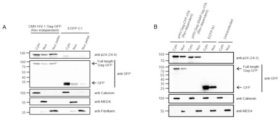 3.2. HIV-1 Gag Is Present within the Nuclear Fractions Using Biochemical Methods