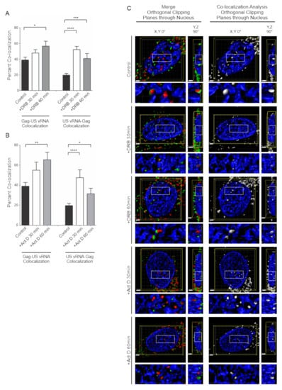 3.5. Effects of Transcription Inhibition on HIV-1 Gag/USvRNA Co-Localization