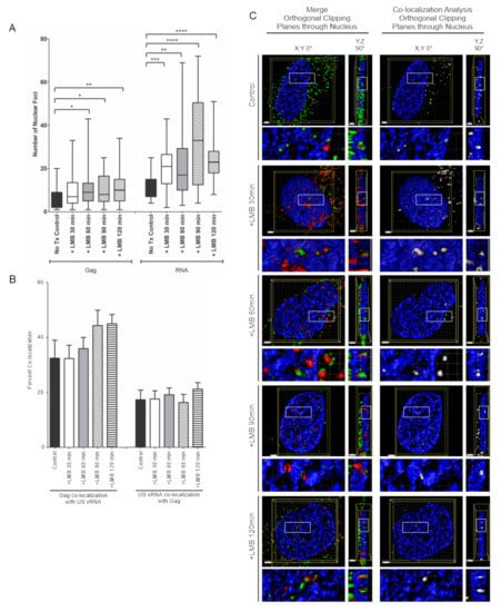 3.6. Effects of LMB Treatment on HIV-1 Gag/USvRNA Association