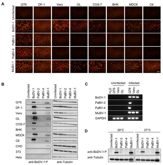 - Horie, M.; Sassa, Y.; Iki, H.; Ebisawa, K.; Fukushi, H.; Yanai, T.; Tomonaga, K. Isolation of avian bornaviruses from psittacine birds using QT6 quail cells in Japan. J. Vet. Med. Sci. 2015. [Google Scholar] [CrossRef]