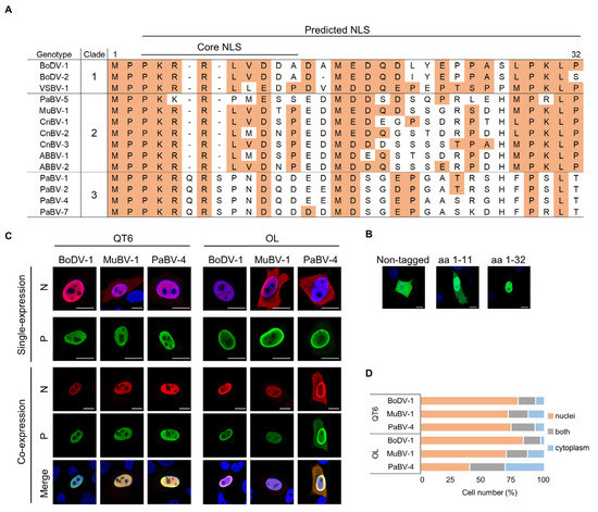 Komorizono, R.; Sassa, Y.; Horie, M.; Makino, A.; Tomonaga, K. Evolutionary Selection of the Nuclear Localization Signal in the Viral Nucleoprotein Leads to Host Adaptation of the Genus Orthobornavirus. Viruses 2020, 12, 1291. https://doi.org/10.3390/v12111291